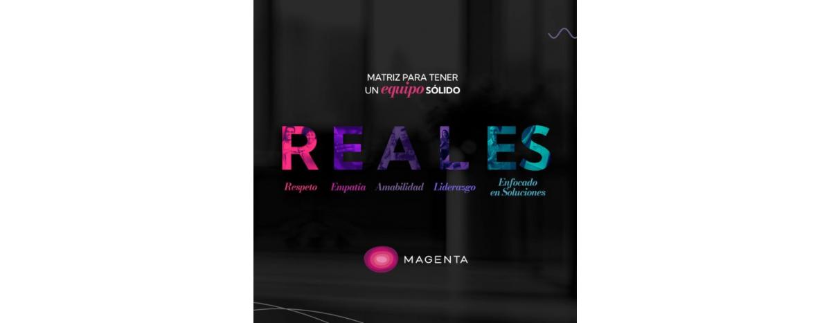 En Magenta creemos que los equipos sólidos no se construyen por casualidad, sino a partir de comportamientos intencionados. Por eso desarrollamos REAL(ES), una matriz que resume los pilares fundamentales para lograr relaciones laborales sanas, auténticas y efectivas.